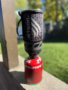 There are a few types of backpacking stoves and most run on Isobutane propane canisters of fuel. However, there are some wood backpacking stoves now. Some, such as Jet Boils, are systems designed to boil water rapidly. However, Jet Boil has come out with a new design that allows for cooking with pots and pans. Small burners also attach to the top of a canister, and you can set your small pot or pan on top. Keep in mind these are designed for backpacking, much smaller than regular pots and pans, and more challenging to cook on. They’re great for boiling water for coffee or rehydrating freeze-dried meals.
