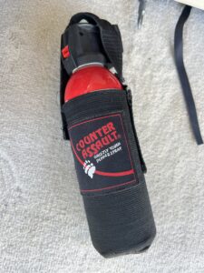 You may or may not be hiking in bear country, but bear spray isn’t a terrible investment regardless. It is basically a concentrated mace in a bigger size and can be used on humans as well. UDAP is one brand I use. It is 2% capsaicin and related products that temporarily disables a bear’s (or human’s) ability to see and smell. Bear spray works by causing swelling in the nasal passages and causing the eyes to tear up. It can be really harmful to humans, but if someone is threatening you, well, that’s on them.