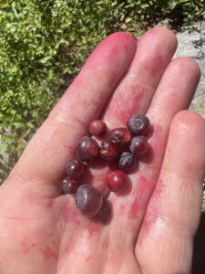 Eventually, you’ll develop your routine for the quickest method of picking huckleberries. However, there is nothing fast about it, and as stated, you’ll spend hours, and it will seem like you’ve barely picked any. However, it is still so much fun that you likely won’t even notice the time passing.